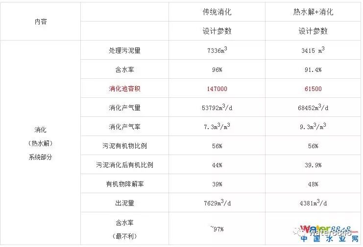 表2傳統(tǒng)消化和熱水解+厭氧消化的設(shè)計(jì)參數(shù)對(duì)比